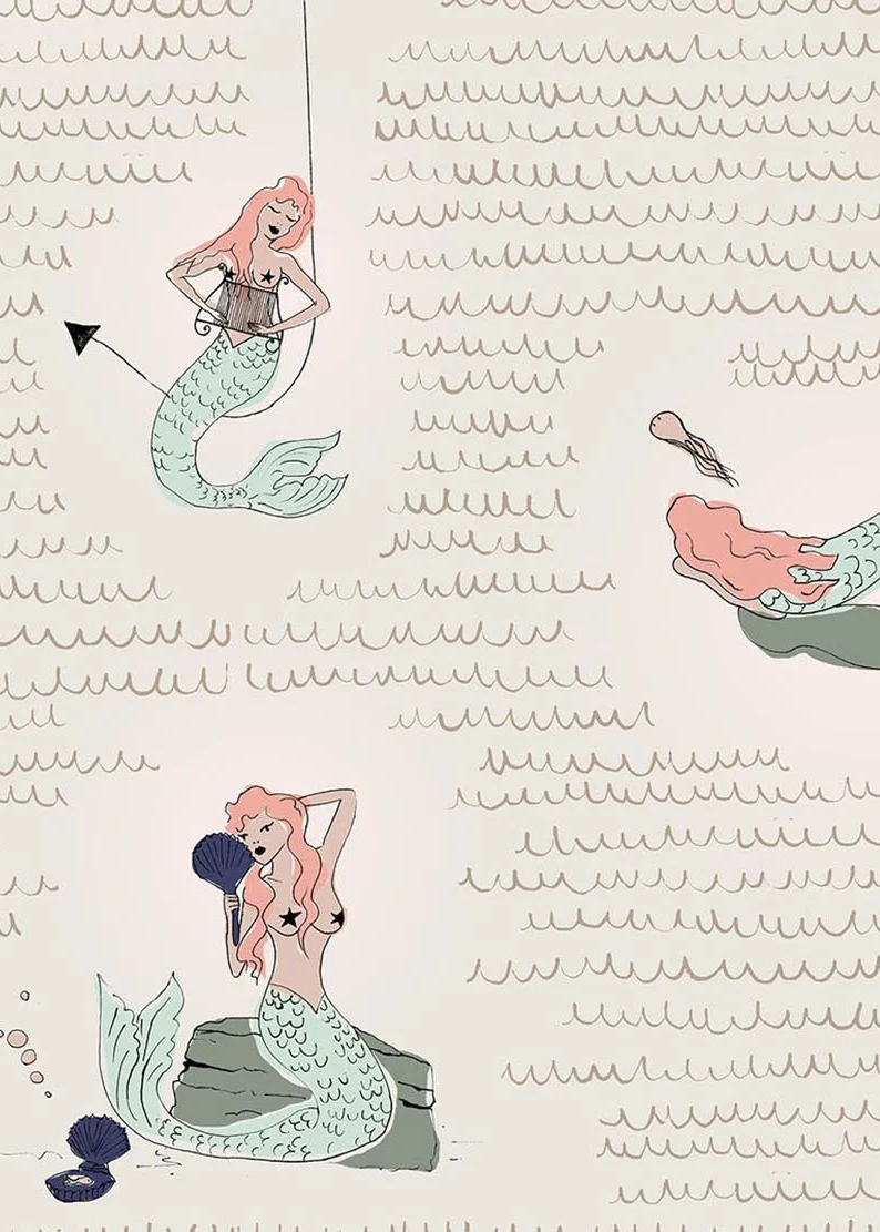 A pin-up mermaid and a sailor meet and fall in love in this maritime fantasy design.